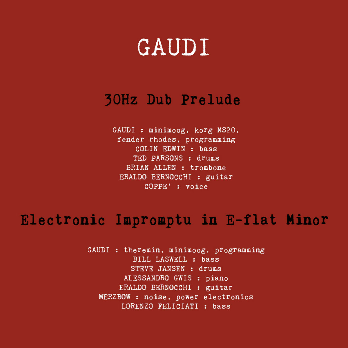 A global favourite in the dub/electronica scenes, producer and solo artist Gaudi's infectious bass-driven sound has contributed to productions, collaborations, songwriting and remixes for acts including: The Orb, Steel Pulse, Lee "Scratch" Perry Nusrat Fateh Ali Khan, Simple Minds, Lamb, Horace Andy, Deep Forest, Mad Professor, Sizzla, Pete Namlook, Shpongle, Adrian Sherwood, Elisa, Michael Rose. ... more